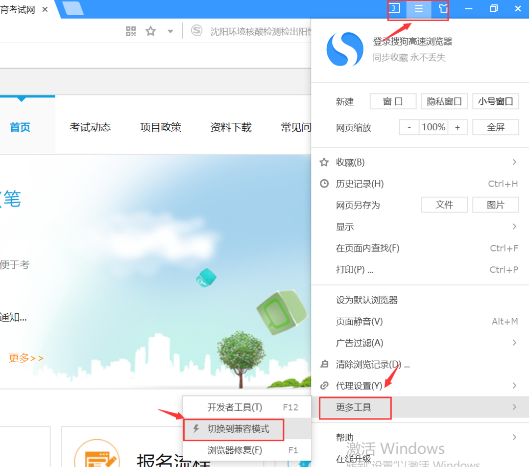 ?方法一:同时按键盘Alt+X+B"三个键,在弹出窗口中添加"neea.edu.cn"到兼容性站点列表中,然后重新访问报名网站即可。