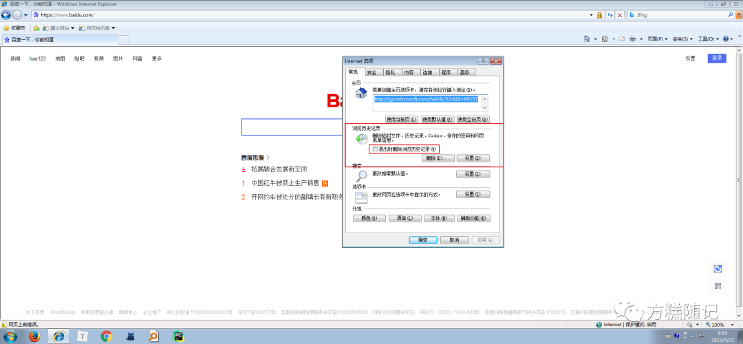 在完成以上设置后,点击常规页面,取消勾选退出时删除浏览历史记录