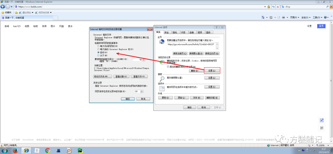 然后点击常规页面中的设置,将检查所存网页的较新版本 设置为:自动