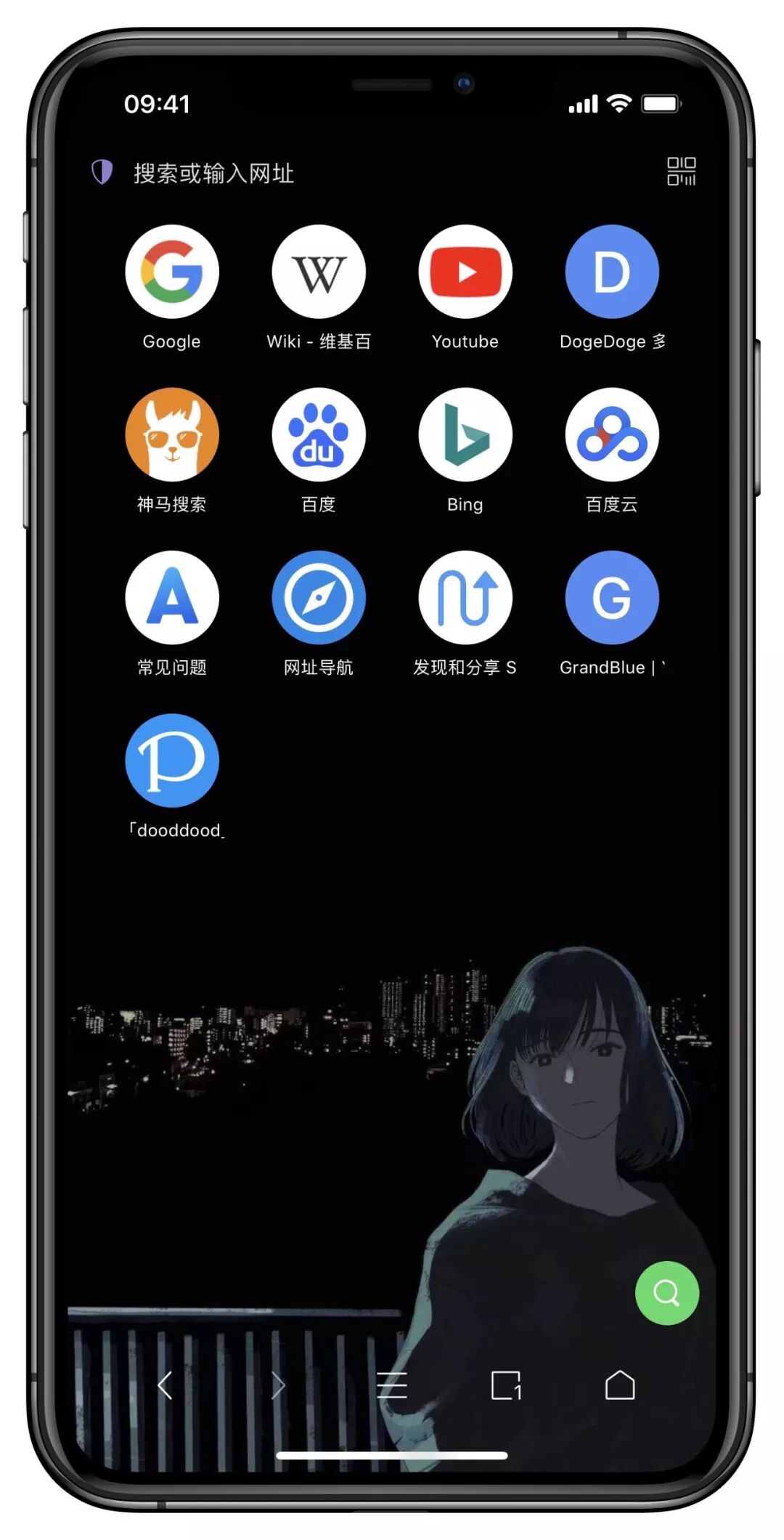 无推送,无打扰,整个界面只有图标和搜索框,清爽至极 ,彻底回归浏览器的本质。可自定义界面背景图,满足大家的个性化要求。