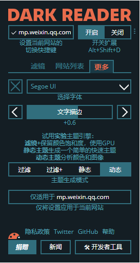 通过两个多小时的寻找,最终,在某论坛好友的推荐下,找到了合适的插件-Dark Reader。一款可以让你的浏览器开启夜间模式的插件。