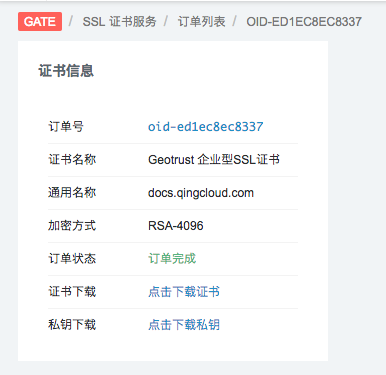 PS:免费证书仅限使用在QingCloud 的负载均衡中,禁止用户下载,公司和姓名信息仅支持中文,仅限国内企业用户购买。