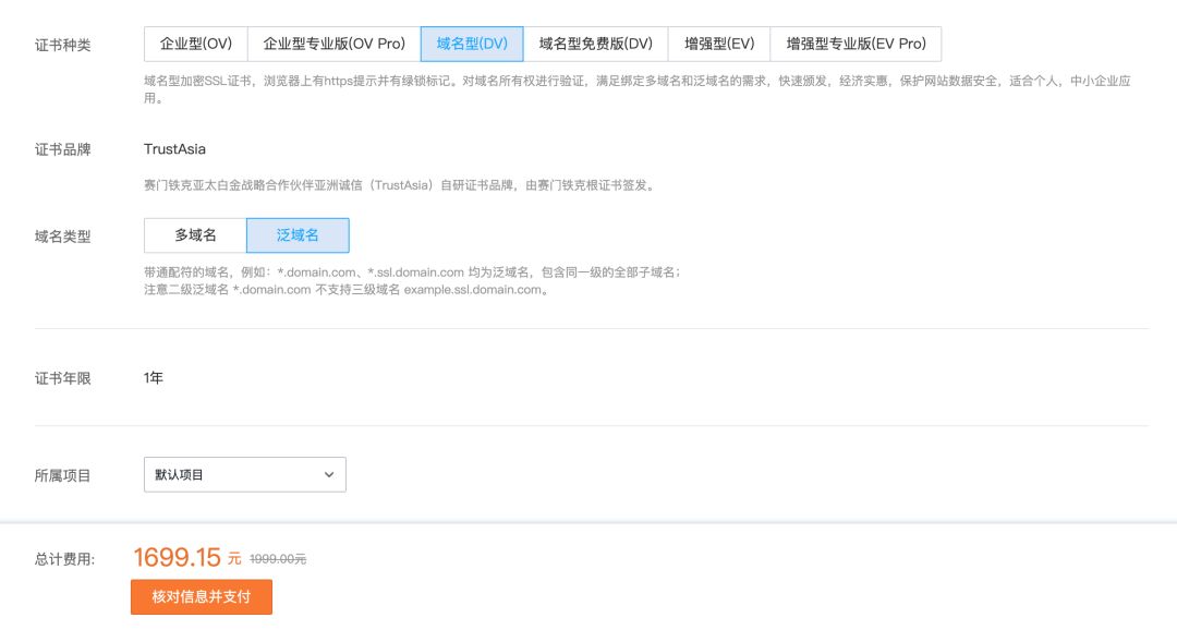 最便宜的,域名型 DV,一年 1699,说贵倒不是很贵。