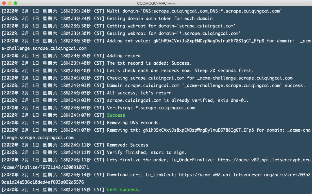 acme.sh--issue-d*.scrape.cuiqingcai.com--dns dns_dp运行结果类似如下: