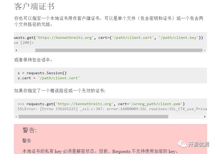url =https://github.comr = requests.get(url, verify=False)print(r.status_code)客户端证书验证方式