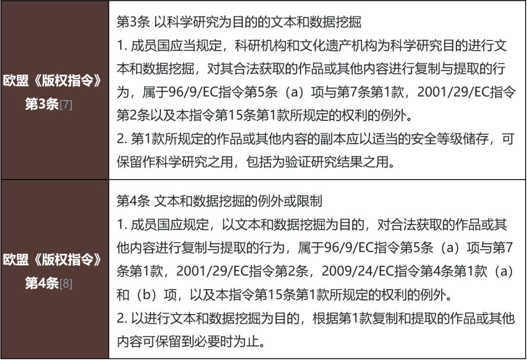 欧盟委员会在2016年9月公布了《欧盟数字化单一市场指令》提案,随后于2019年3月通过了《数字化单一市场版权指令》(下称《版权指令》),对TDM的使用制定了版权例外规则。