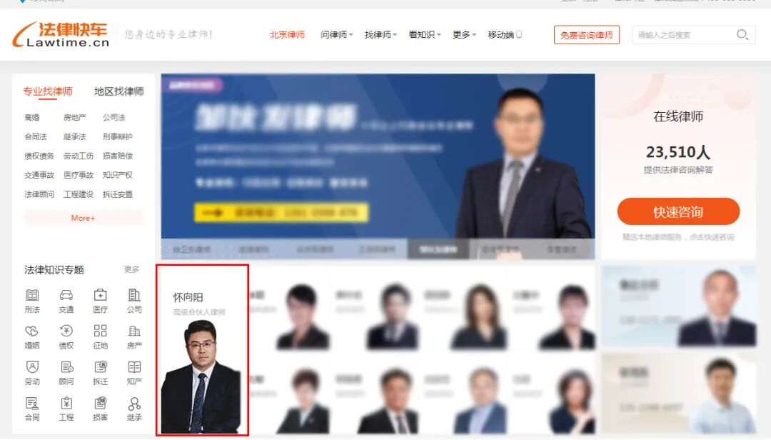 怀向阳律师进驻法律快车13年了,作为北京最早一批入驻法律快车的律师,怀向阳律师一直以创新、开放、包容的心态对待网络营销。13年来,怀向阳律师始终与法律快车携手合作,共同进步。在2018年法律快车先锋榜中,怀向阳律师荣获网律年度杰出律师称号,并在2019年律界先锋榜中荣获年度领袖律师称号。