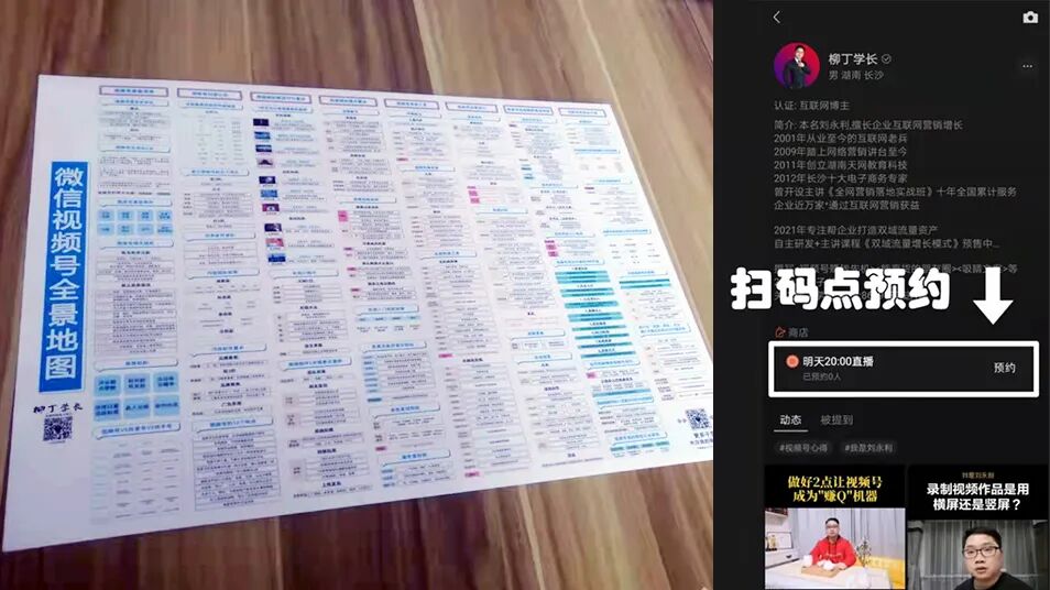 3月,更换在互联圈多年未变的头像昵称,以职业照头像来暗示自己,要更职业化来鞭策自己;确认以柳丁学长为网络昵称,寓意:学习成长、学有所长、教学相长;建立柳丁学长铁粉群,不定期为铁粉们输出高价值互联网营销内容;个人原创《视频号全景地图》并生成印刷版,旨在一张图帮解决企业如何用好视频号。