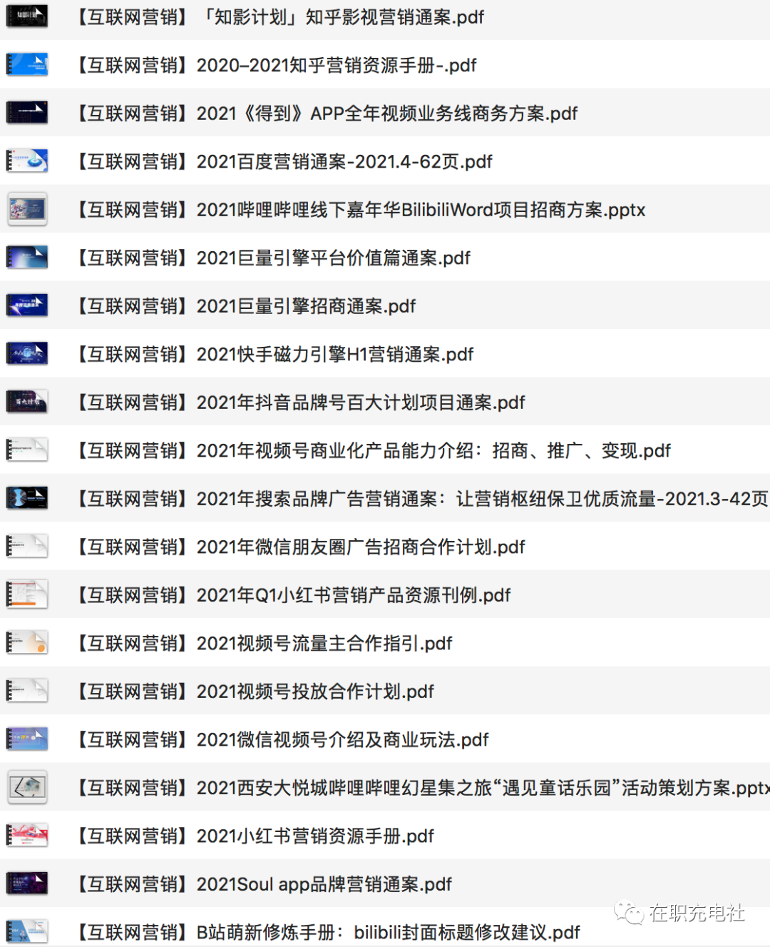 本期,C姐又收集整理了20份 2021年互联网营销:知乎 b站 小红书 视频号...,供各位小伙伴们参考学习!(声明:资源来源于公开渠道收集整理,版权归原作者所有,仅供个人学习,禁止商用!)