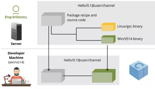 构建后的二进制文件可以上传到 JFrog Artifactory 或 Bintray,与团队或整个社区共享。 团队中的开发人员不需要重新编译库,Conan 将从配置好的远程库(分布式模型)中仅提取匹配用户配置所需的二进制包。 但是还有更多的挑战需要解决: