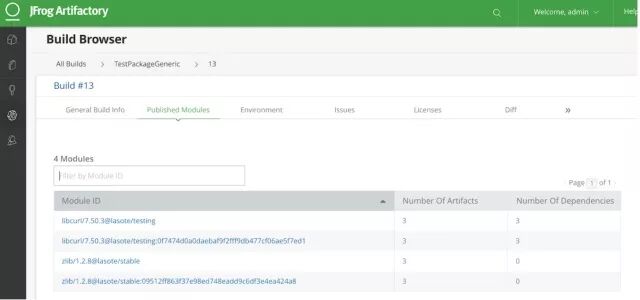 收集从 Conan 操作(安装/上传包)的工件来生成 Buildinfo 并且发布到 Artifactory。 BuildInfo 对象是非常有用的,例如,将创建的 Conan 包推广到不同的存储库并对 Jenkins 构建具有完整的可追溯性: