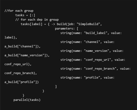 MultiBuild任务的 Jenkins 流水线脚本将对SimpleBuild任务的并行调用,最后并行启动组。