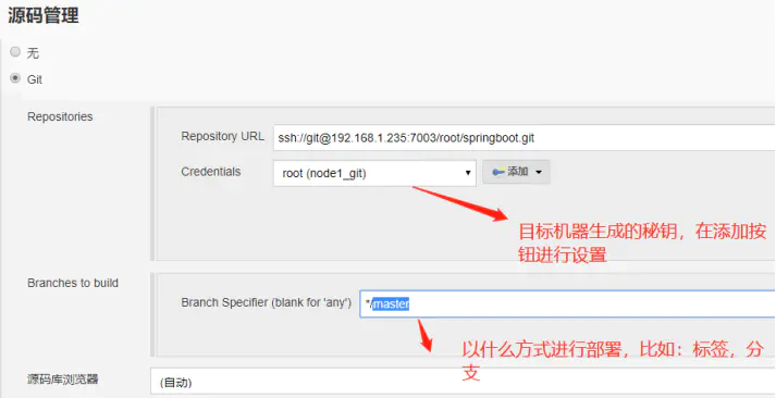 步骤流程几乎一样,唯一是在SSH Publishers 和源码存放路径不一样,测试环境部署目标机器是与Jenkins机器不同一台机器