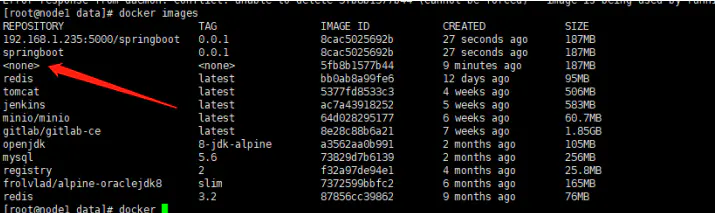 在docker编译不成功会或者是新版本覆盖旧版本归类为虚悬镜像,生成这个个镜像既没有仓库名,也没有标签,均为