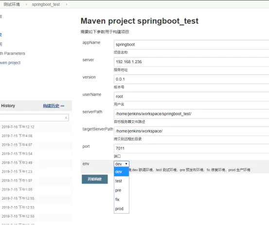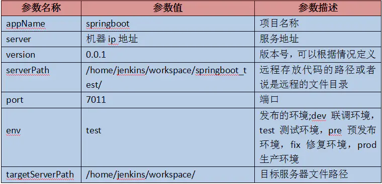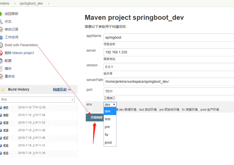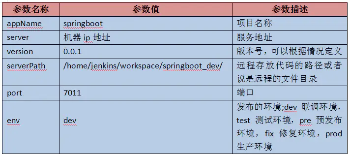 如:sh build.sh 192.168.1.235 springboot 0.0.1 7011 /home/jenkins/workspace/springboot_dev