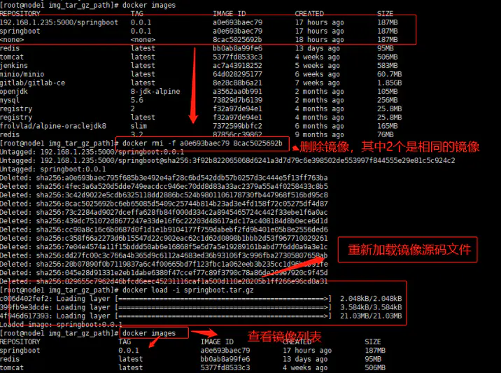 docker save 镜像名 -o 路径/镜像名.tardocker load 命令是用于导入使用docker save命令导出的镜像,此命令非常重要,由于有些客户要求项目工程要求部署在内网,此时这个命令在无网络的内网情况下部署项目的时候就体现它重要的地位了.语法docker load [OPTIONS],在加载的过程有点慢,因为文件有点大,其中显示Loady Layer [======]输出信息,证实镜像是分层关系。
