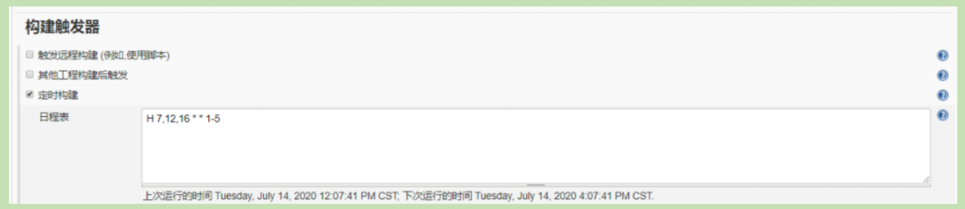 周一至周五,9点 12点 16点定时触发 | H 9,12,16 * * 1-5 | |