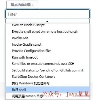 再添加一个构建步骤,正常情况下我们调用 docker 通过命令行调用就可以了,所以我们现在也添加一个执行shell的步骤即可。