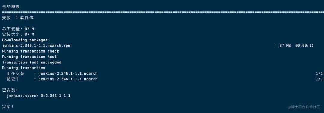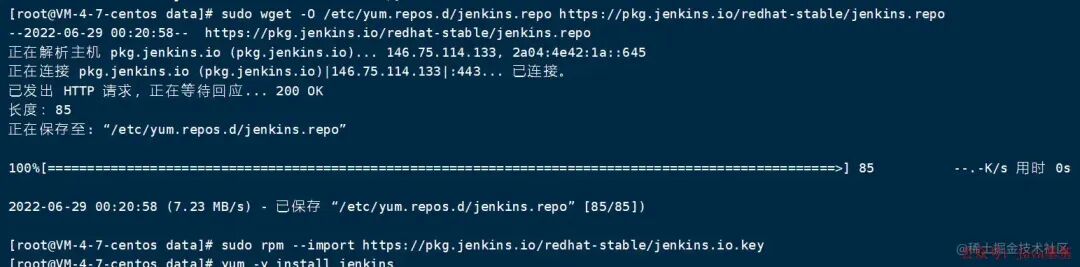 sudo wget -O /etc/yum.repos.d/jenkins.repo https://pkg.jenkins.io/redhat-stable/jenkins.repo --no-check-certificatesudo rpm --importhttps://pkg.jenkins.io/redhat-stable/jenkins.io.key通过 yum 安装 Jenkins