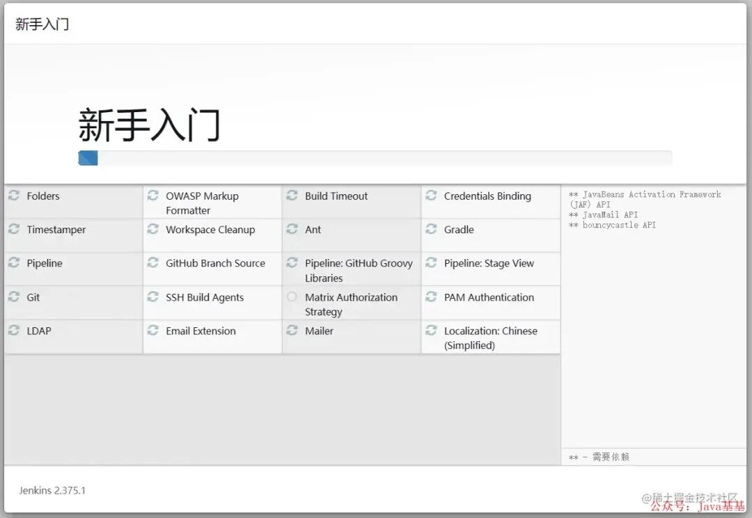 在服务器查看密码文件cat /var/lib/jenkins/secrets/initialAdminPassword2.密码输入成功后,进入插件安装界面,如果你是新手,直接使用推荐安装的插件即可: