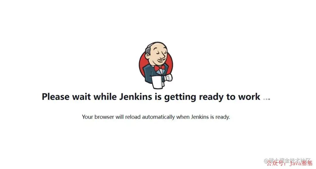 3.在浏览器输入 ip+port,可以进入到 Jenkins 的初始化界面,第一次启动要等的比较久:进入这个界面,说明你的 Jenkins 已经在启动中了。