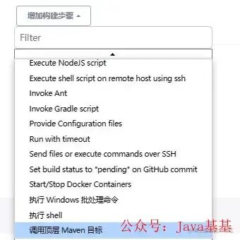 点击增加构建步骤,由于我们是 Maven 管理的项目,需要先使用 Maven 构建,所以第一步就用调用顶层Maven目标: