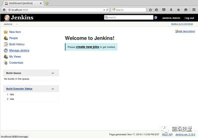 图1-4 Jenkins欢迎页:新建任务、工作项和项目入口