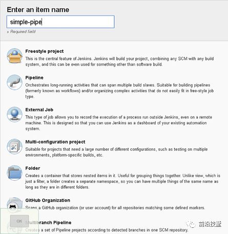 Jenkins 2增加了一些新的任务类型,主要是围绕利用流水线即代码和Jenkinsfile等关键功能来设计的。这些类型比以往任何时候都更容易自动化任务、流水线创建以及组织项目。每个新任务/工作项/项目的创建都以相同的方式开始。