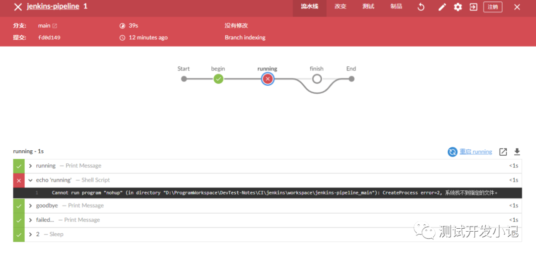 可以看到Blue Ocean可视化了pipeline的运行流程,可以看到每一个阶段的执行状态以及日志。
