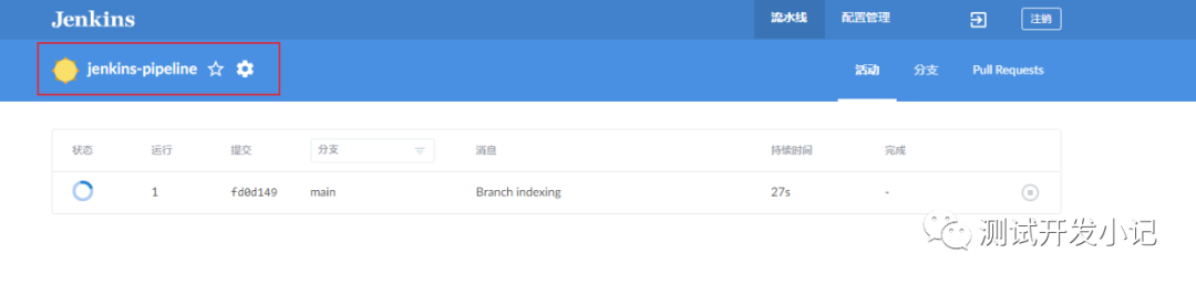 Blue Ocean会创建一个多分支流水线项目,我这里生成了一个main分支。