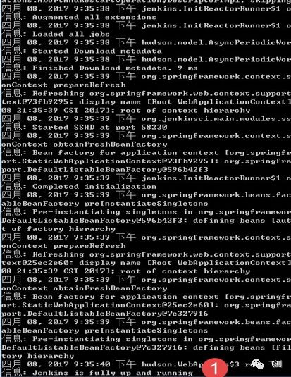 2)回车,然后检查jenkins是否启动ok。若窗口输出Jenkinsis fully up and running,则说明Jenkins成功启动了。