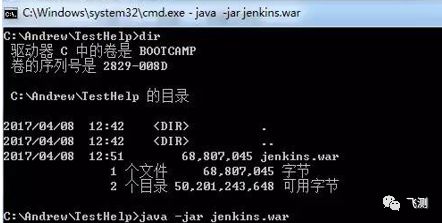 1)打开windows命令行窗口,进到Jenkins所在目录,输入java -jar jenkins.war