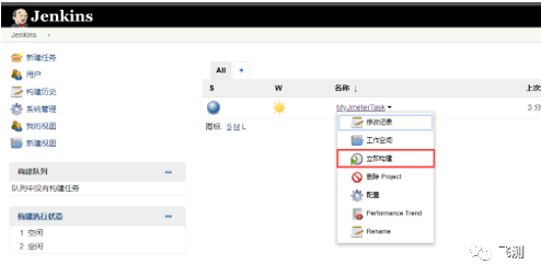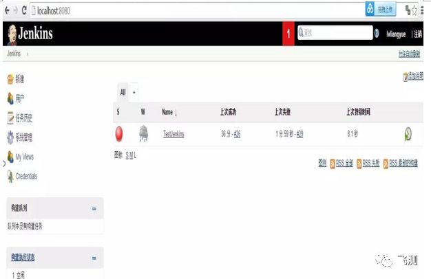 首次进去Jenkinsdashboard页面应该为空,提示你新建任务。因我已提前创建本文例子,所以界面不是空的。