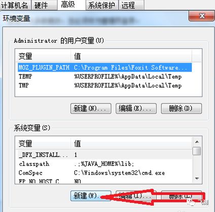 在环境变量对话框中点击下方的系统变量的新建按钮:
