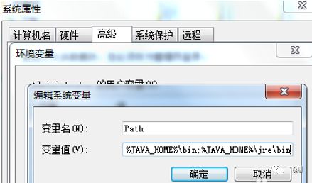 在系统变量里面找到Path变量,注意,这次是点击编辑按钮,在弹出的对话框中的变量值的最后,一定是最后,添加如下字符串:;%JAVA_HOME%\bin;%JAVA_HOME%\jre\bin。注意,前面第一个是分号。如果没有Path变量,则添加Path变量,添加步骤和前面一样,不在重复。