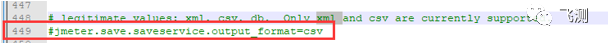 jmeter.save.saveservice.output_format=xml (去掉注释(),修改csv 为 xml)