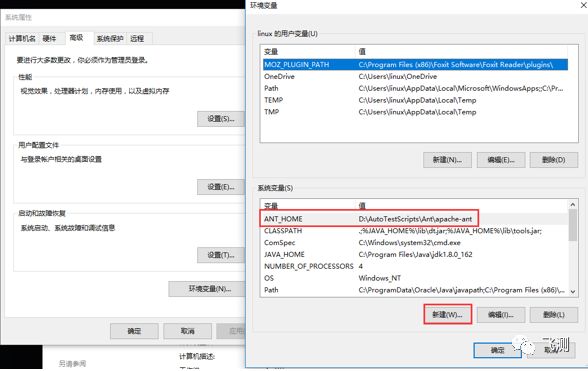配置环境变量。点击新建,输入ANT_HOME和ANT解压后的路径