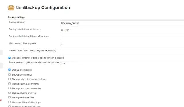 使用ThinBackup插件,允许我们对Jenkins配置信息进行全量或增量备份,由于插件不会保存构建历史和构建工件,所备份过程更为快捷,并且无需关闭Jenkins服务器。
