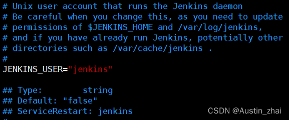 vim /etc/sysconfig/jenkins这里可以修改Jenkins的程序账号