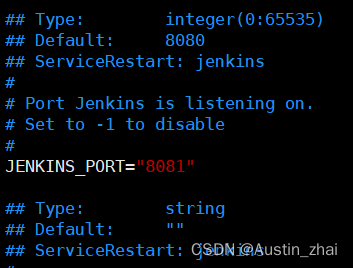 yum install -y jenkins如有需要可以修改对应的Jenkins配置文件(非必要)