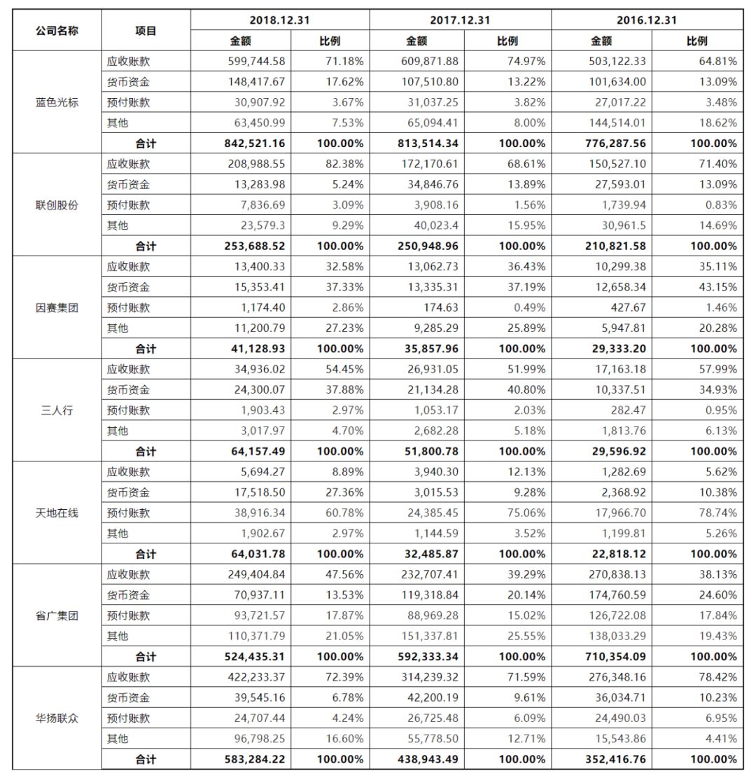 虽然蓝色光标、联创股份没有披露近三年前五大客户名称,但从其他上市公司披露的数据可以发现,互联网营销公司的主要大客户一般都比较稳定,并且投放订单金额较大。