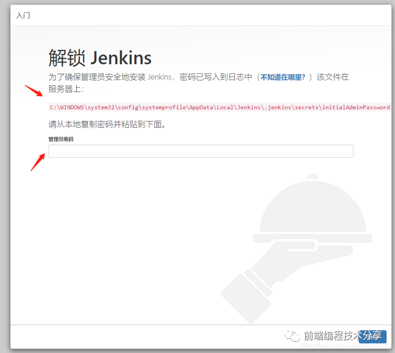 http://localhost:8000网站,这时需要等待一会,进行初始化。按照提示找到对应的文件(直接复制路径在我的电脑中打开),其中有管理员密码。