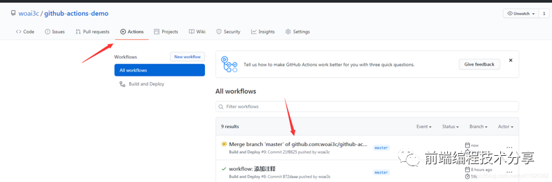 Github Actions 的执行详情点击仓库中的Actions选项查看。