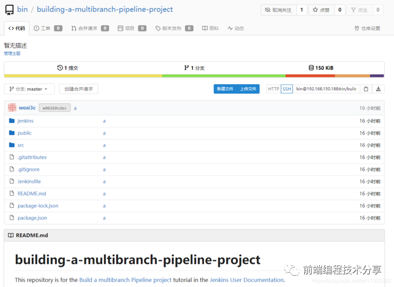 下载 Jenkins 提供的 demo 项目 building-a-multibranch-pipeline-project,然后在你的 Gitea 新建一个仓库,把内容克隆进去,并提交到 Gitea 服务器。