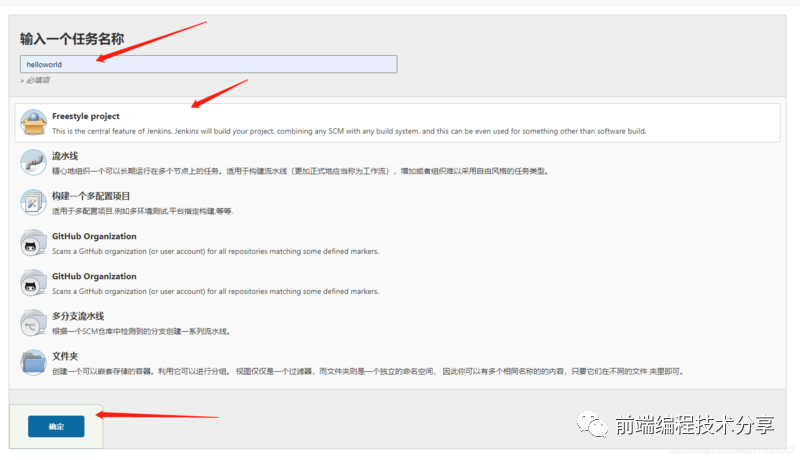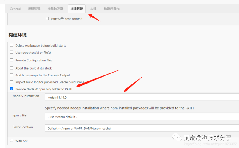 选择你的构建环境,这里选择刚才配置的 nodejs。