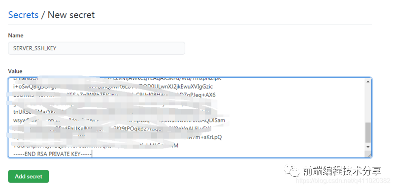 SERVER_SSH_KEY,并将刚才的阿里云密钥填入内容。