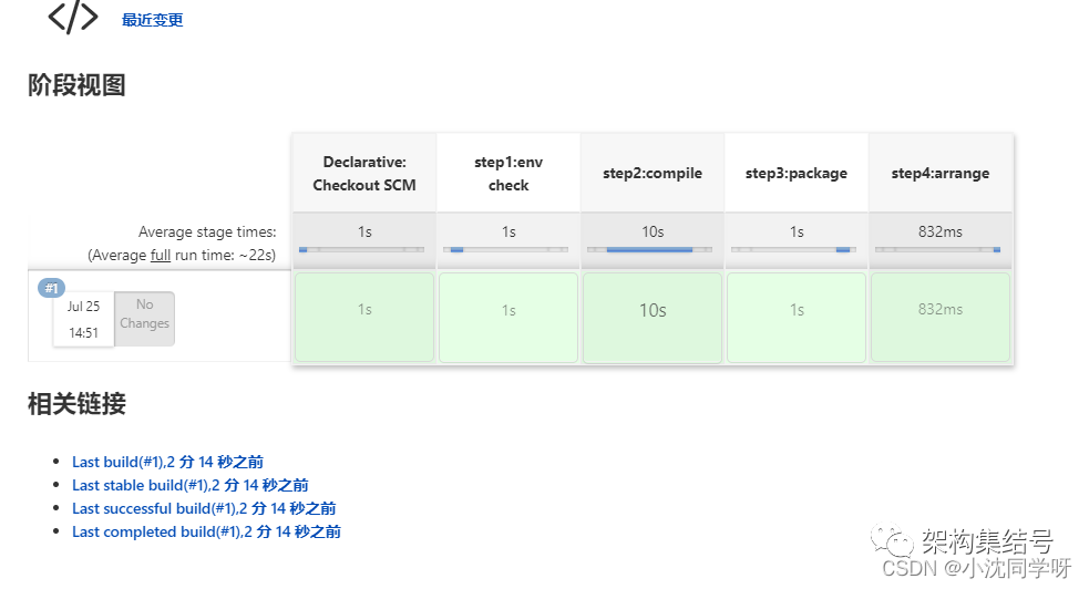 如图所示:流水线demo上次构建成功