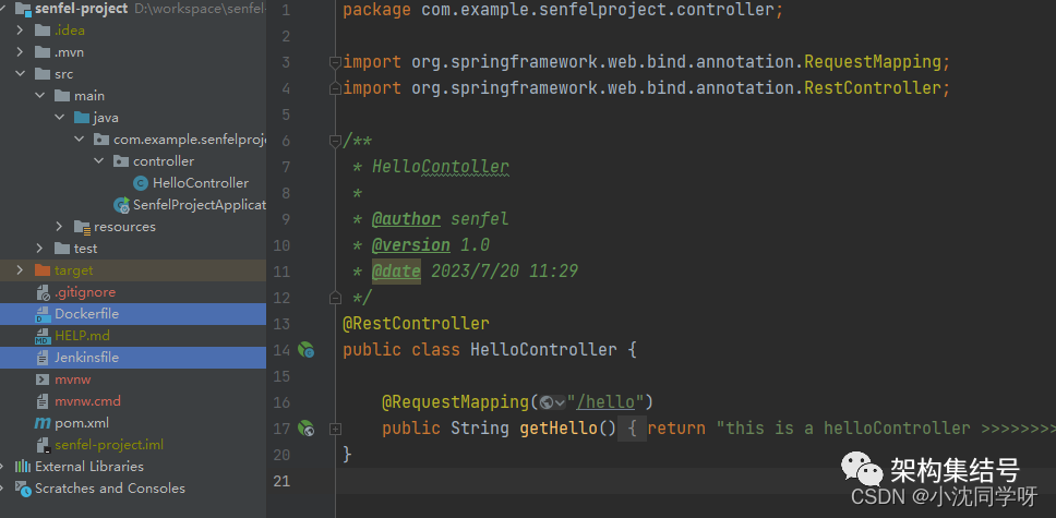 2、准备一个项目, 在根目录下创建两个文件Dockerfile、 Jenkinsfile