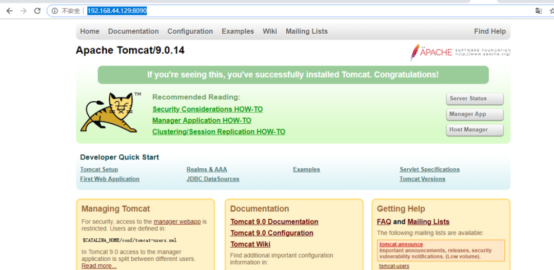 访问tomcat地址:http://192.168.44.129:8090