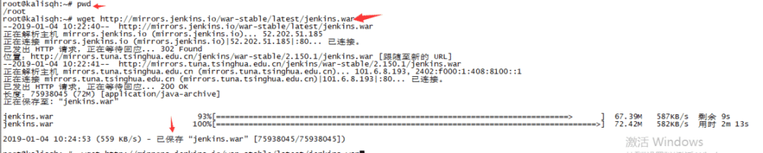 在根目录下安装jenkinspwd 查看当前目录wget http://mirrors.jenkins.io/war-stable/latest/jenkins.war